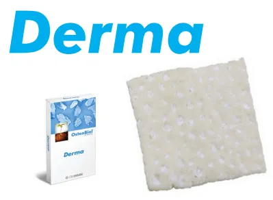 Мембрана Derma – представляет собой резорбируемый коллагеновый барьер. Выполняет функцию защиты и стабилизации костного аугментата. Можно оставлять ее открытой, дерма обладает свойствами прекрасно интегрироваться в мягкие ткани. Может быть использована при открытом заживлении ран.